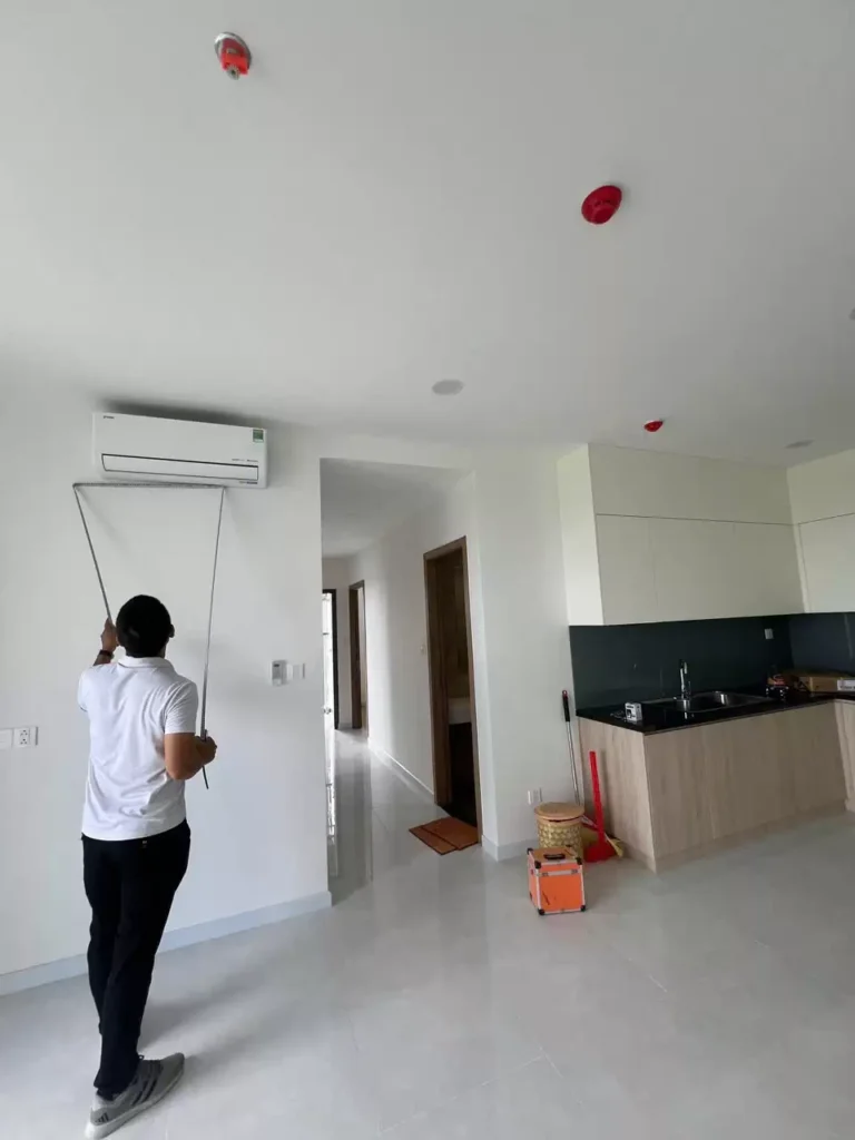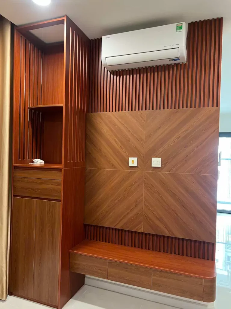 Điều hòa được lắp gọn gàng phía trên, đảm bảo thẩm mỹ mà vẫn tiện nghi.