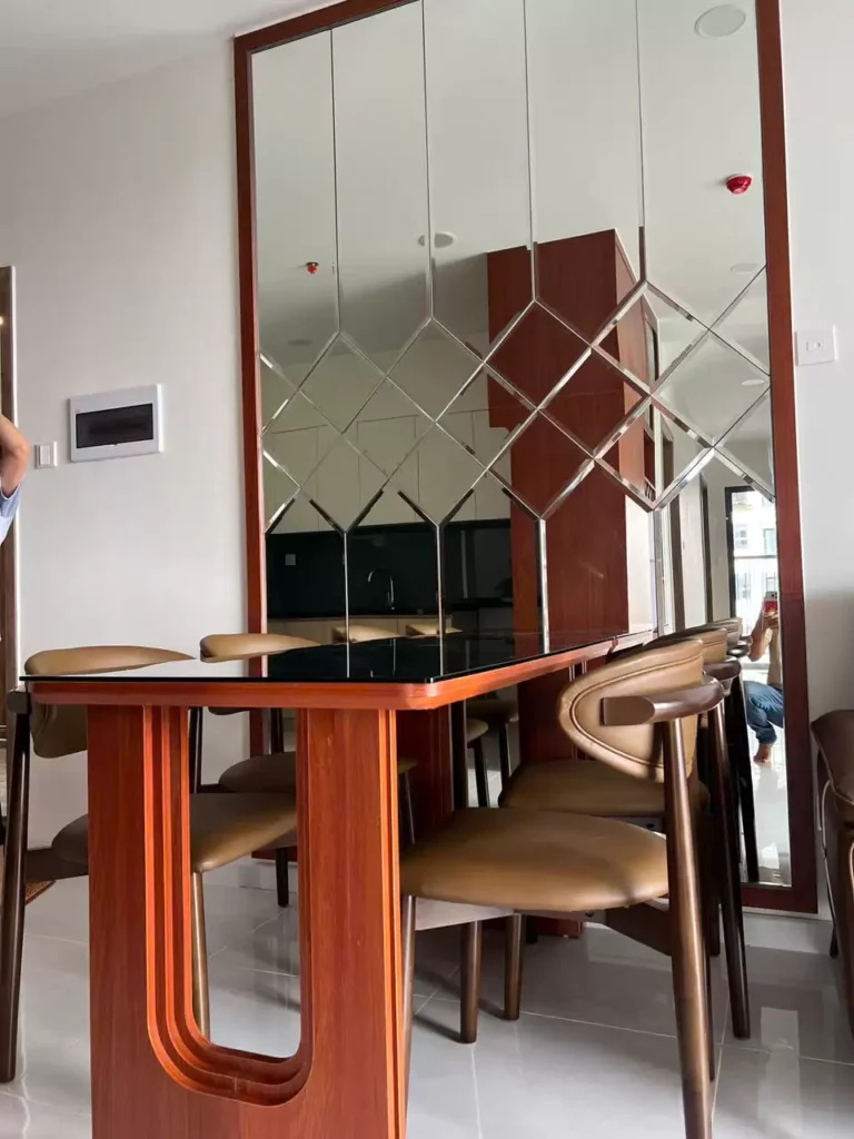 Gương lớn treo trên tường giúp không gian như rộng mở hơn.