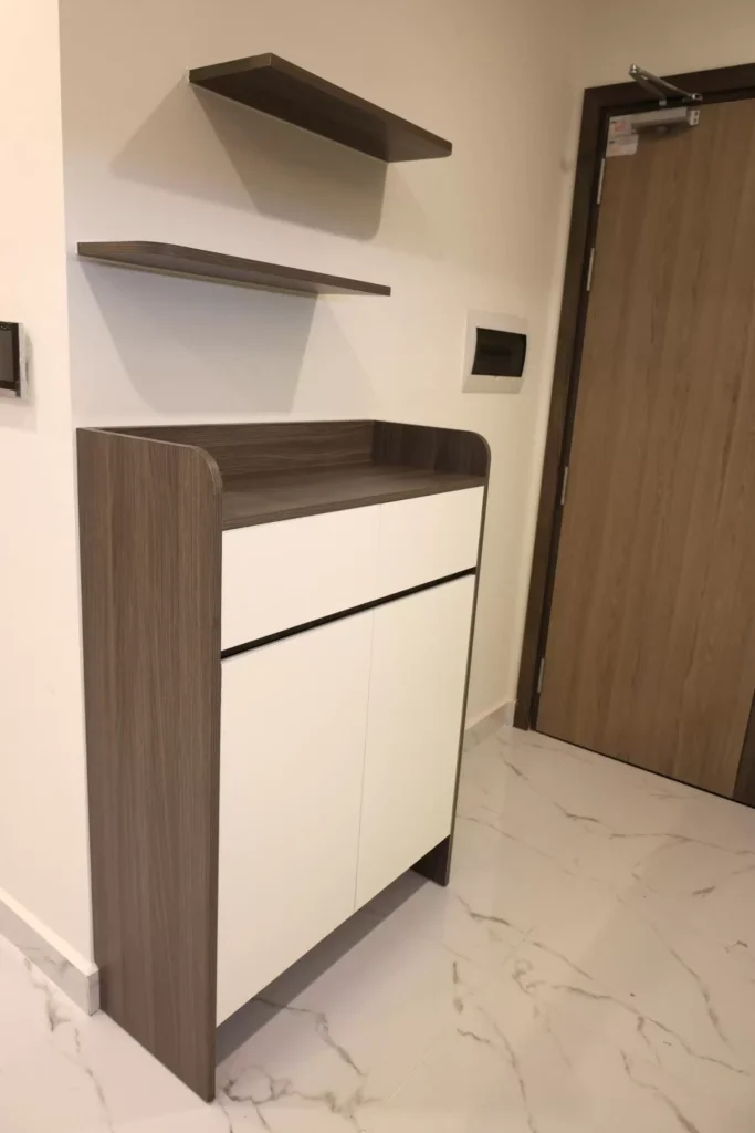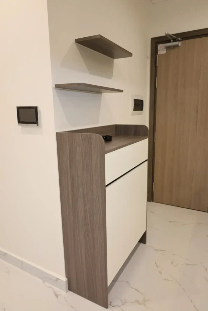 Bề mặt tủ: có thể đặt chậu cây, lọ hoa hoặc đồ trang trí, tạo điểm nhấn cho lối vào.