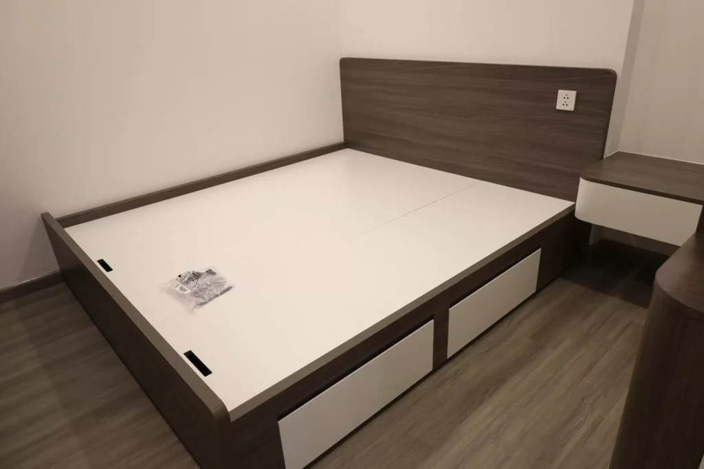Giường ngủ kết hợp hộc kéo: tiết kiệm diện tích, vừa làm nơi nghỉ ngơi vừa là tủ lưu trữ chăn ga gối.